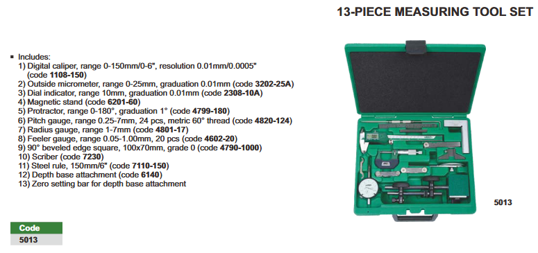 Alat za mjerenje, set 13 dijelova, Insize