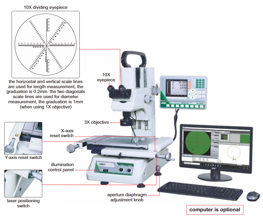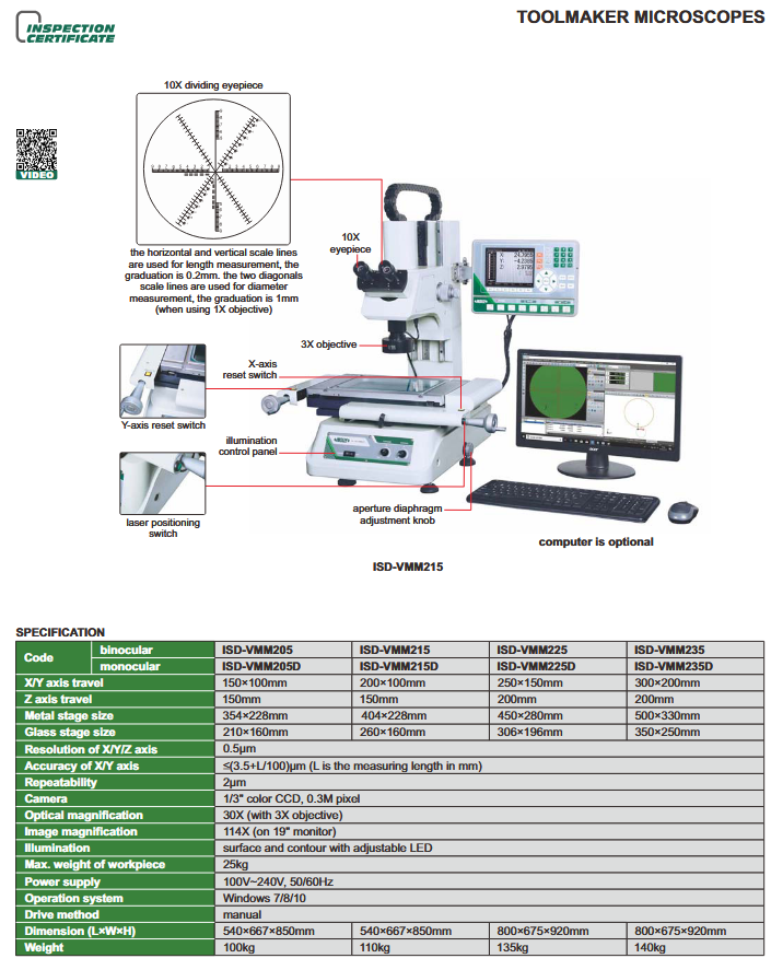 INSIZE ISD-VMM215 je precizan mjeriteljski mikroskop namijenjen za kontrolu dimenzija u alatničarstvu i strojarskoj industriji. Omogućuje točna mjerenja duljine i promjera uz visoku razlučivost i ponovljivost.