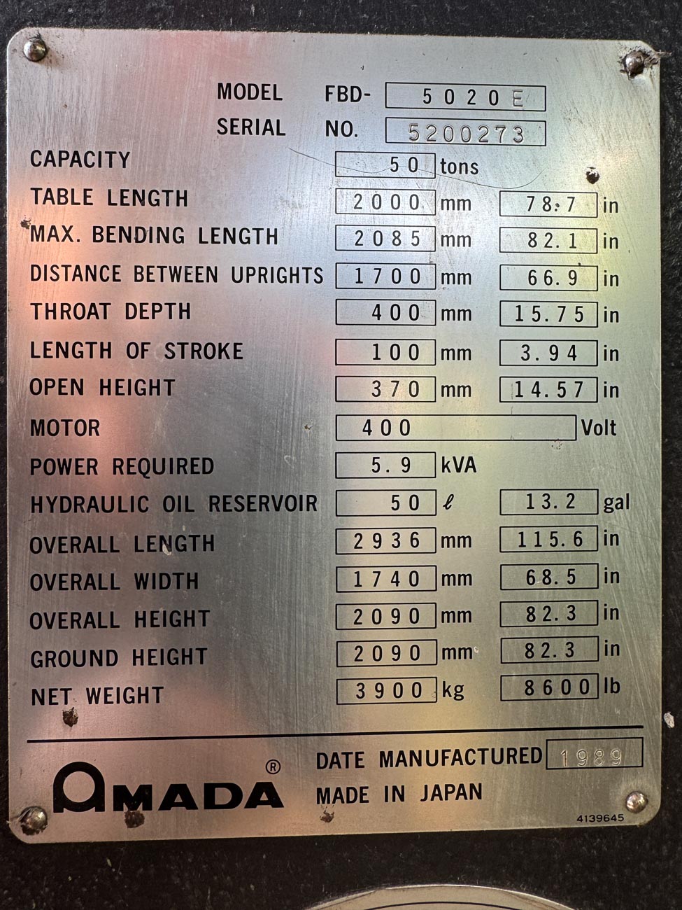 Apkant preša AMADA NC 50tx2000mm (Neispravno stanje - strujni dio)