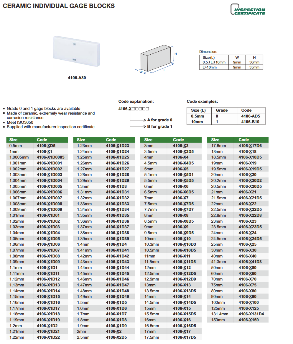 Blok keramički, grade 0, 40 mm, Insize