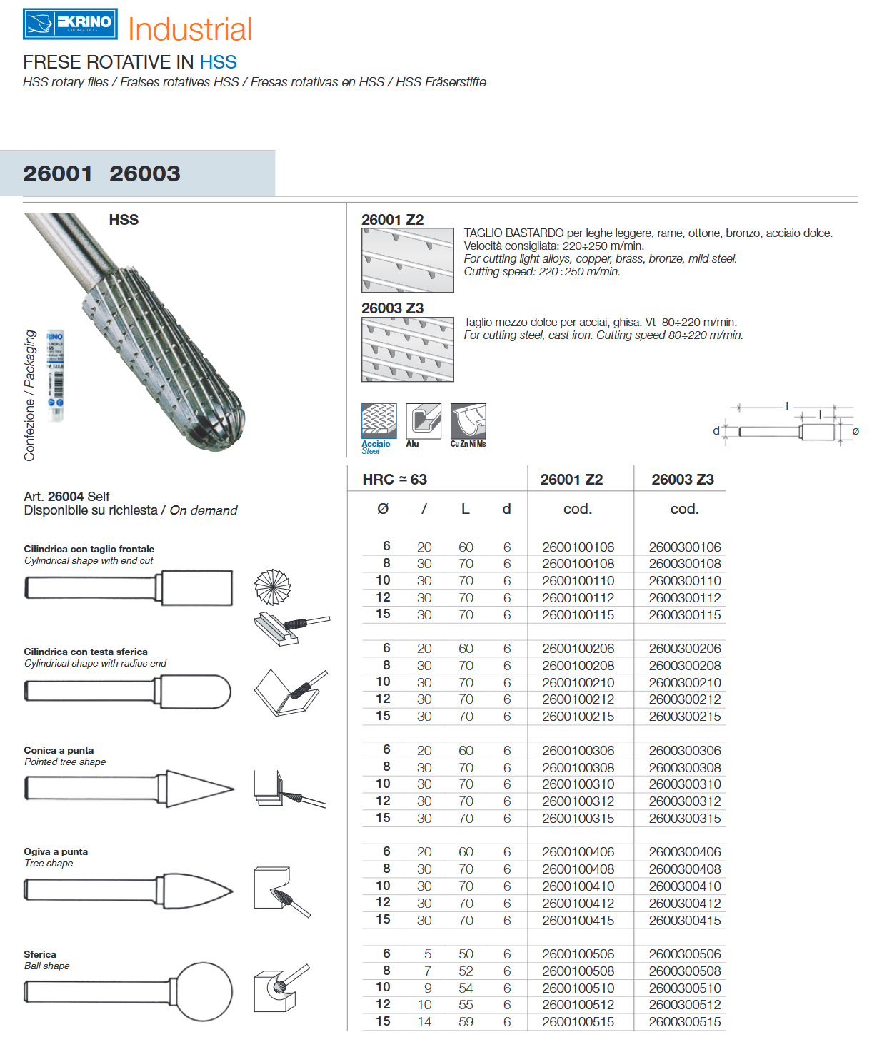 Bravarsko roto glodalo Ø15 mm, konusno-ovalno, Z3, HSS, Krino