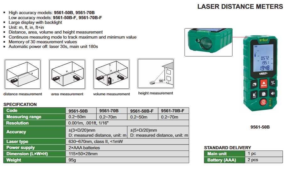 - točnost: ±(3+D/20)mm (D-udaljenost koja se mjeri)