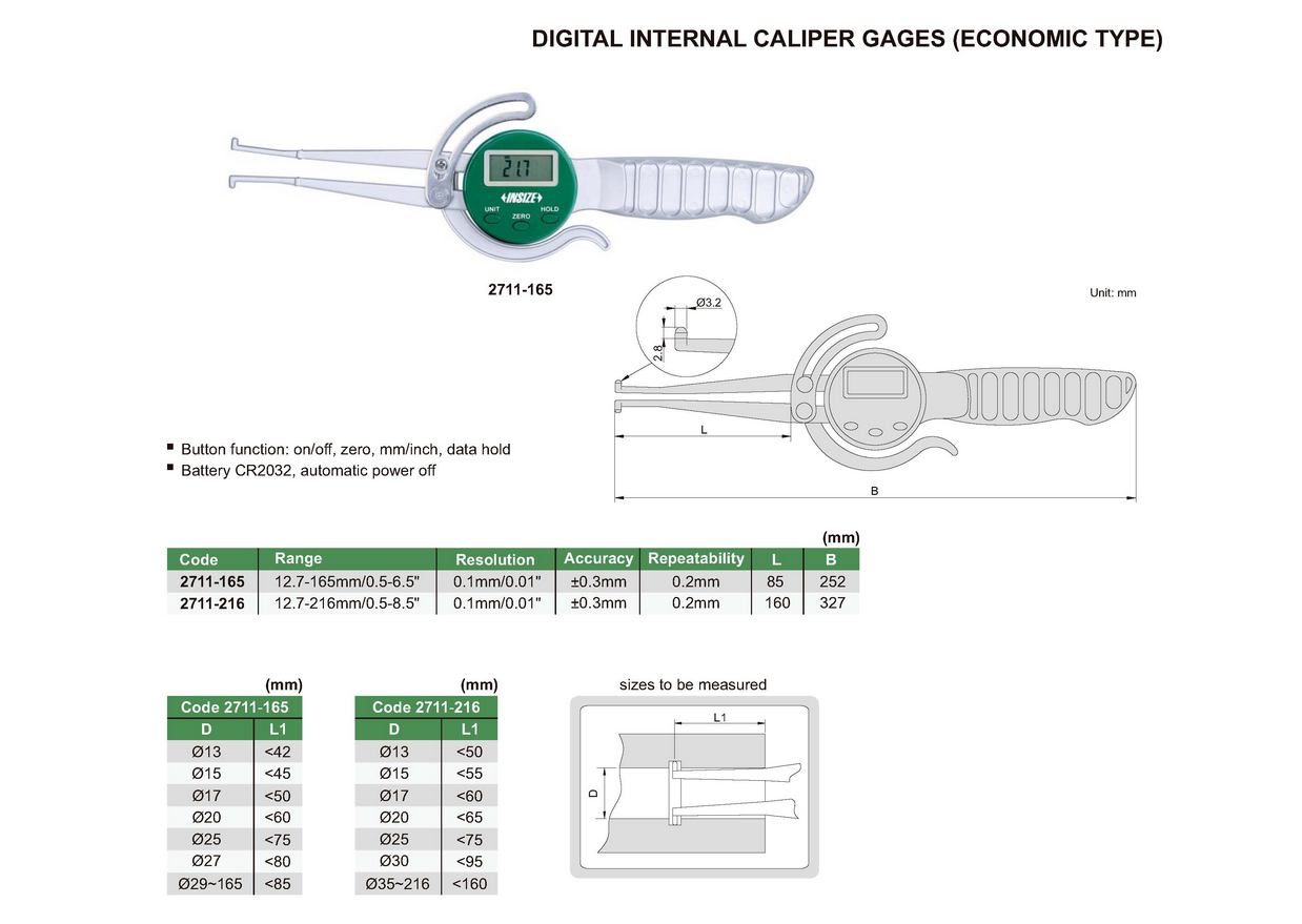 Digitalni uređaj za unutarnja mjerenja 12.7-216 mm/0.5-8.5, Insize