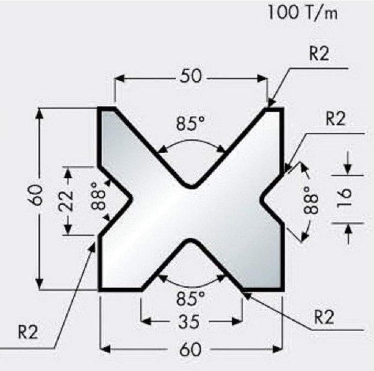 Donji alat za savijanje 20.09 - 85°/88°, L=835 mm, 60x60 mm, segmentirani