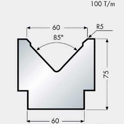 Donji alat za savijanje V=60 mm, H=75 mm, L=800 mm