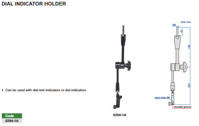 pupitaster ø8 mm mjerenje mehanički komparator insize 6291-1 držači držač mjernog sata držač