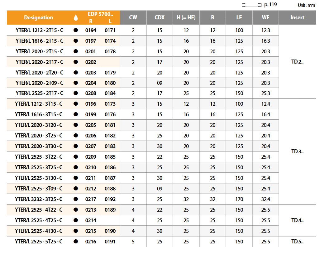 - Držač pločice za odrezivanje YTER 2525-3T22-C, YG-1