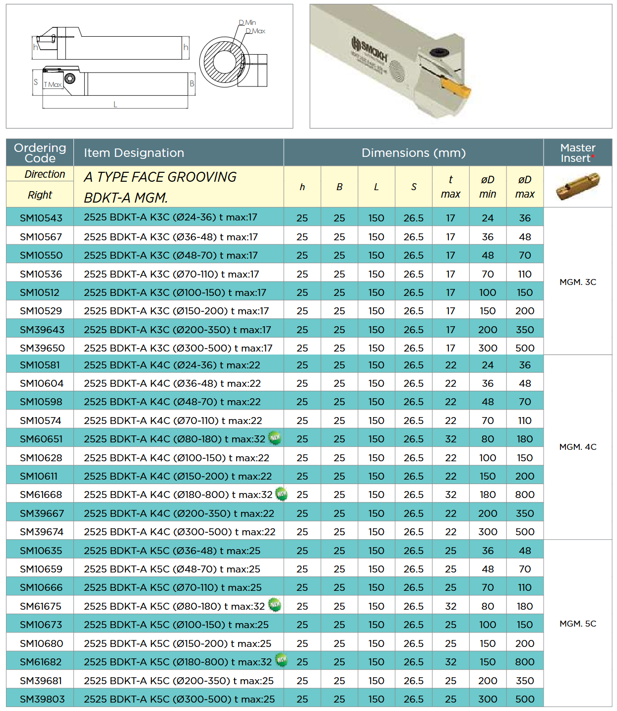 Držač pločice za čeono tokarenje 2525 BDKT-A-K4C, 100-150 mm, Smoxh