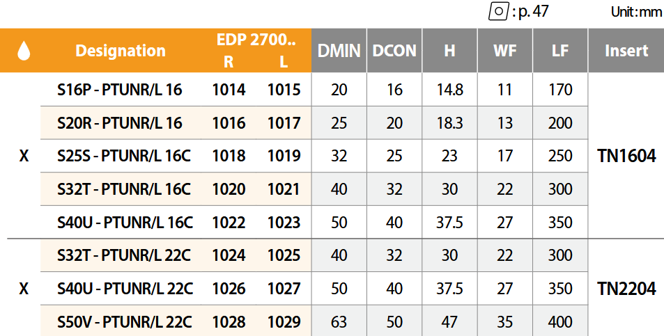 Rezni alat Držači pločica za tokarenje Za unutarnje tokarenje Držači za TN** pločice