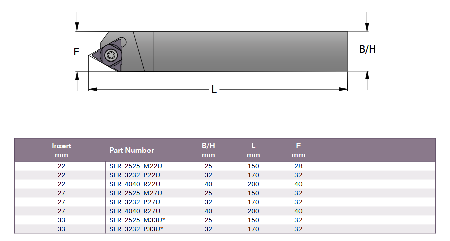 Držač pločice za vanjski navoj SER-2525 M22U, SmiCut