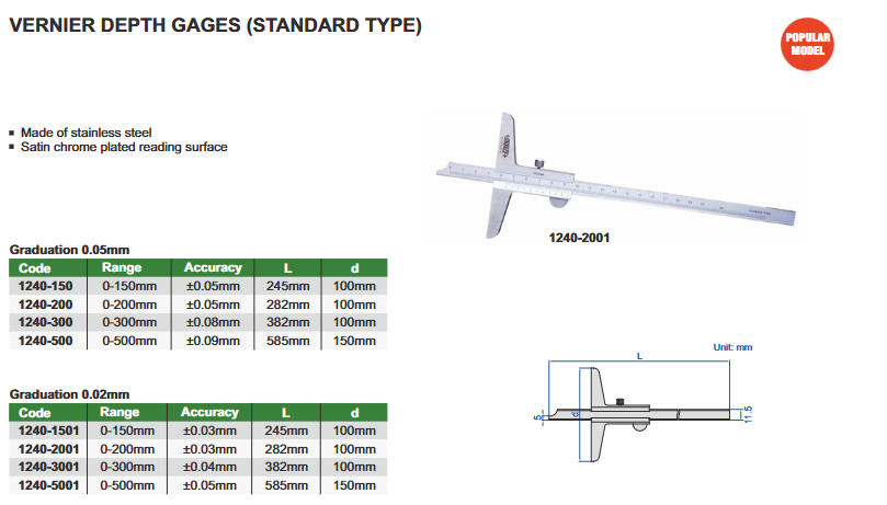 Dubinomjer 0-150 mm, 0.05mm, Insize