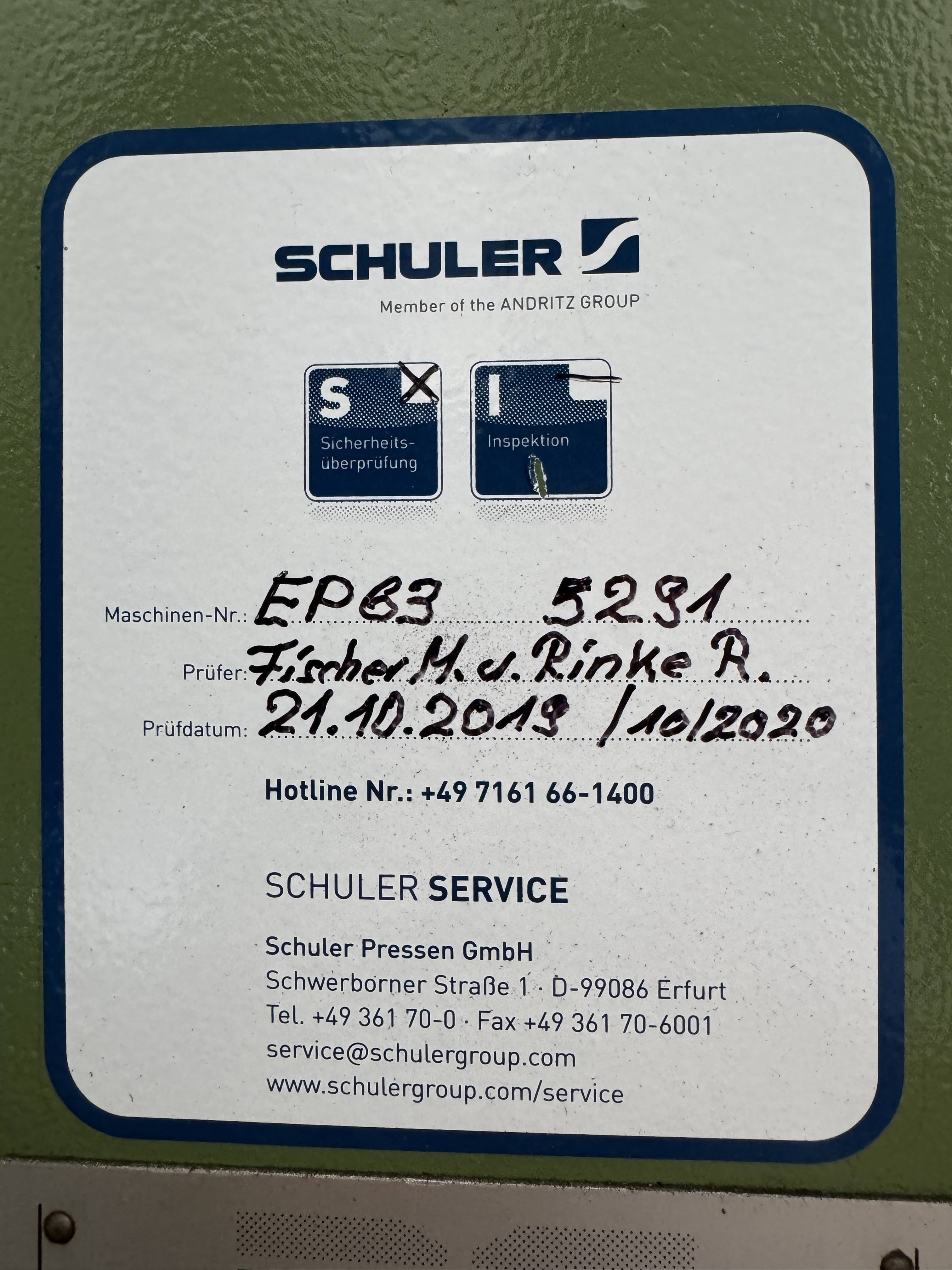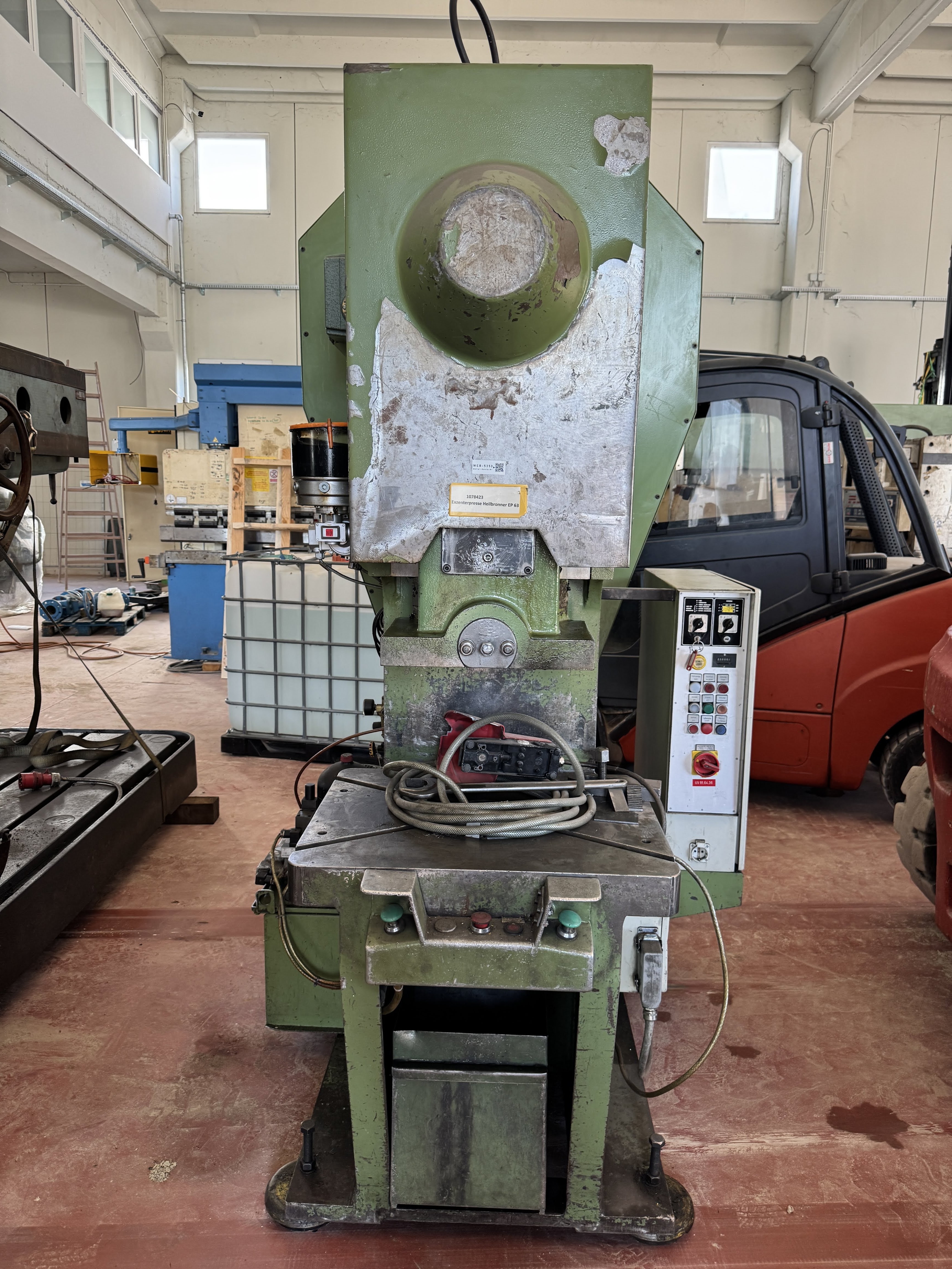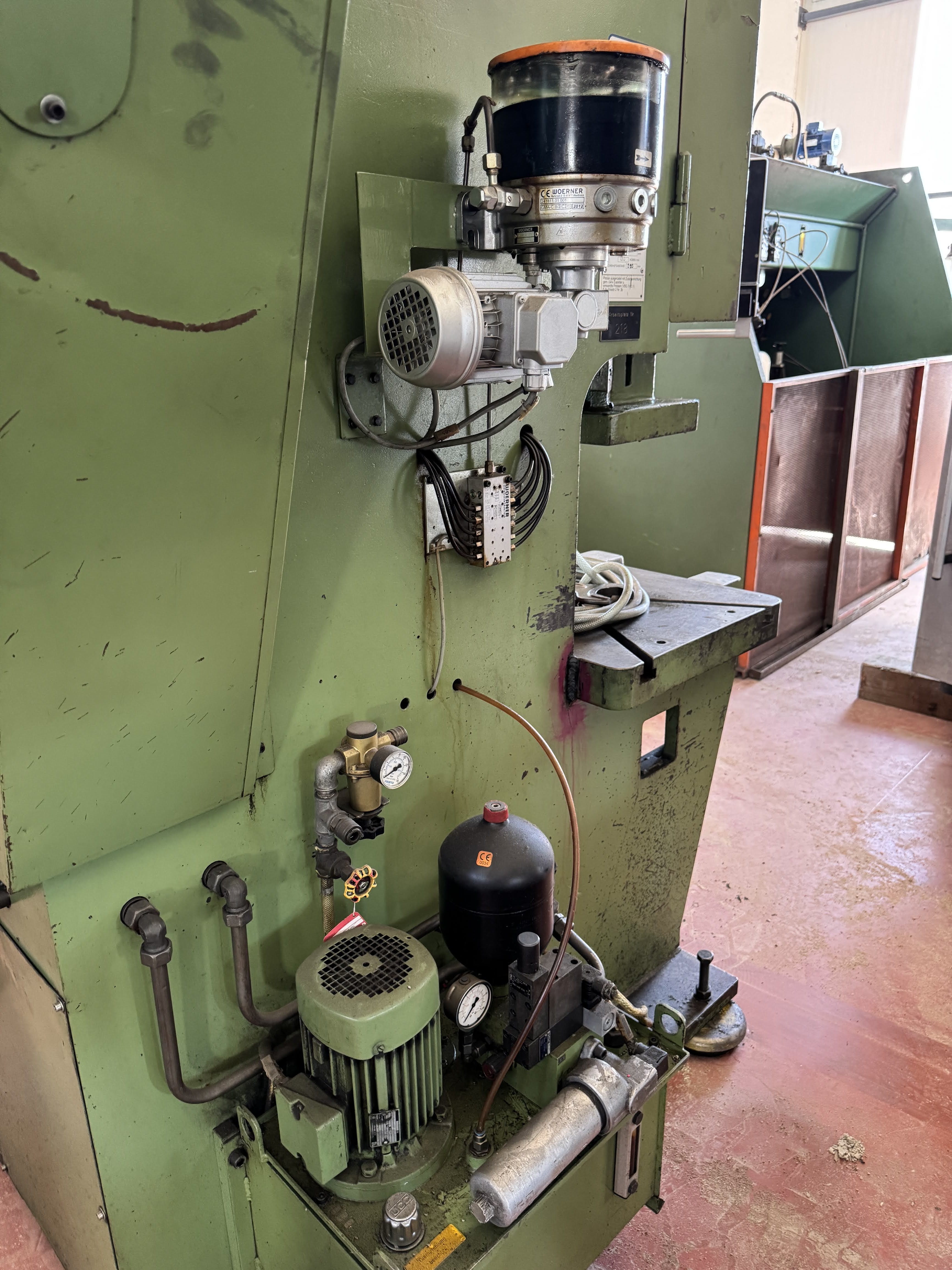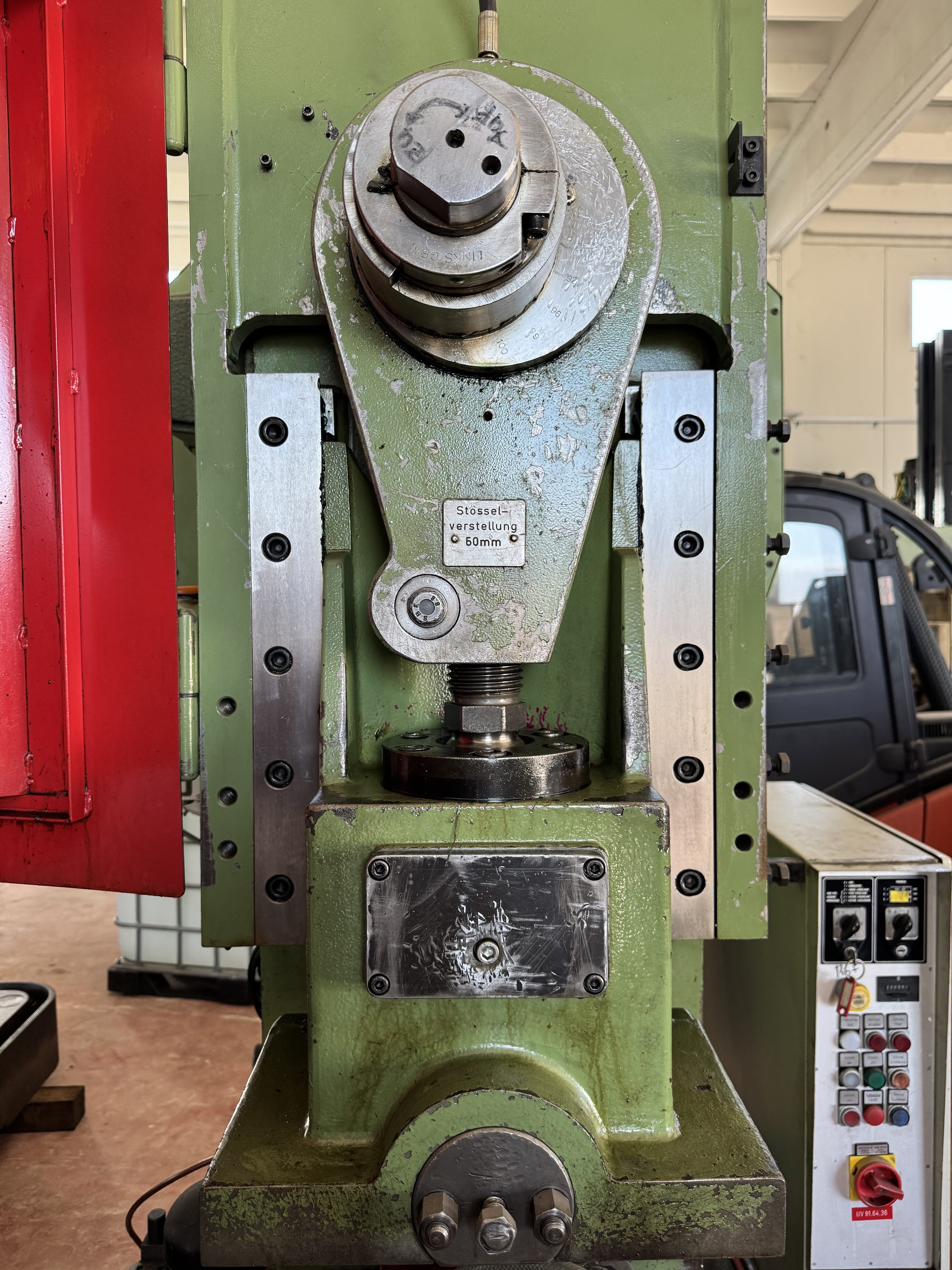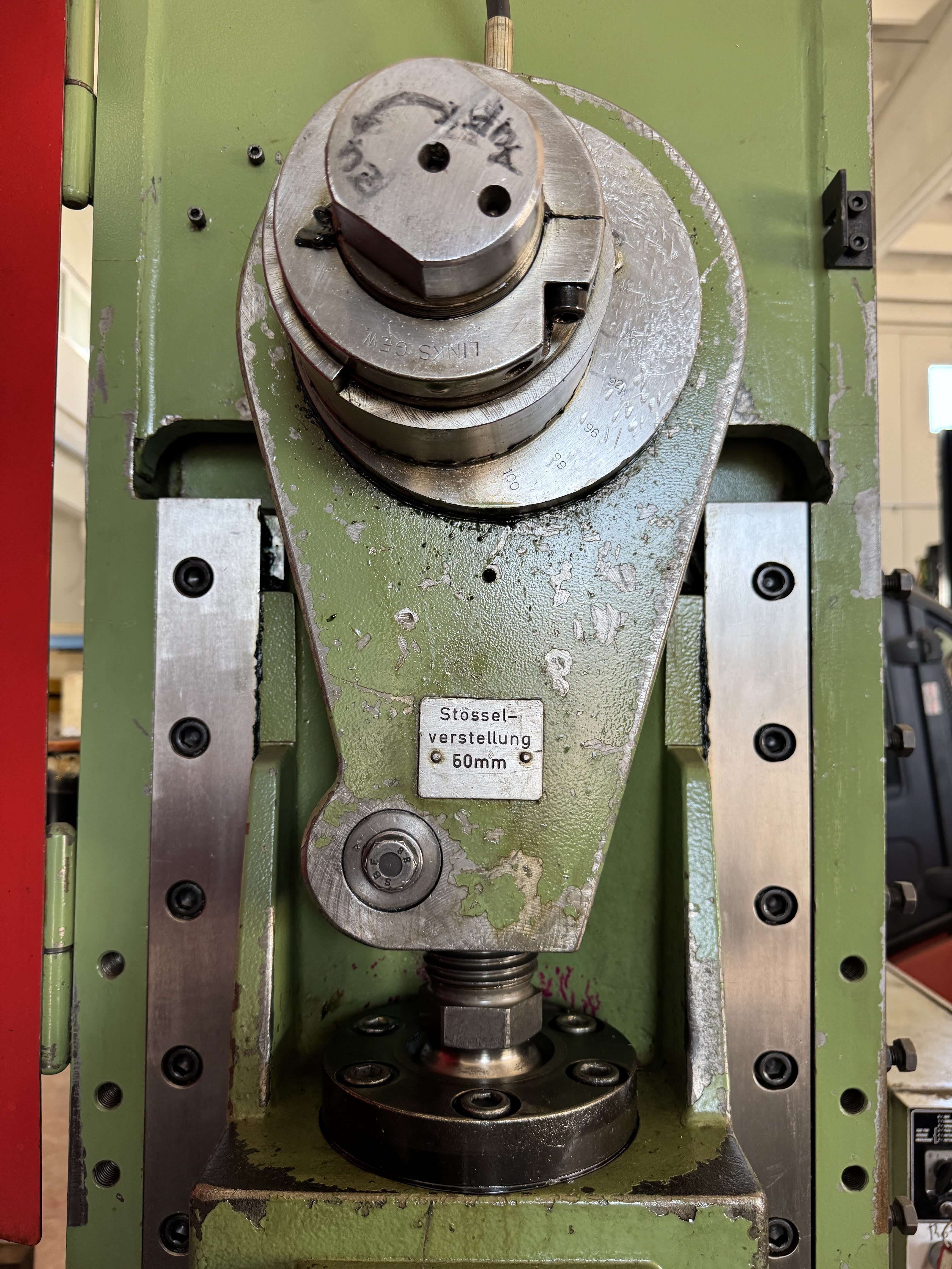 Specifikacije su preuzete iz tvorničke identifikacijske pločice na stroju. Nazivi u zagradama su originalni njemački pojmovi s pločice (Hub, Hubzahl, Stösselverstellung, Druckleistung itd.).