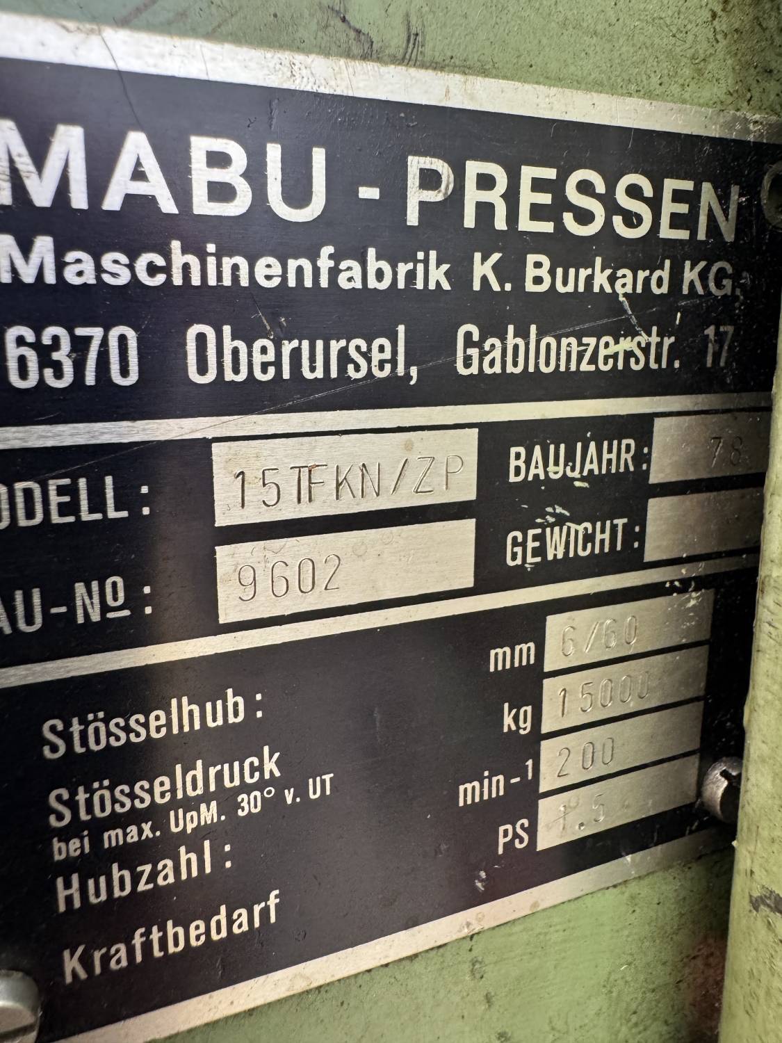 MABU-Pressen 15 TFKN/ZP