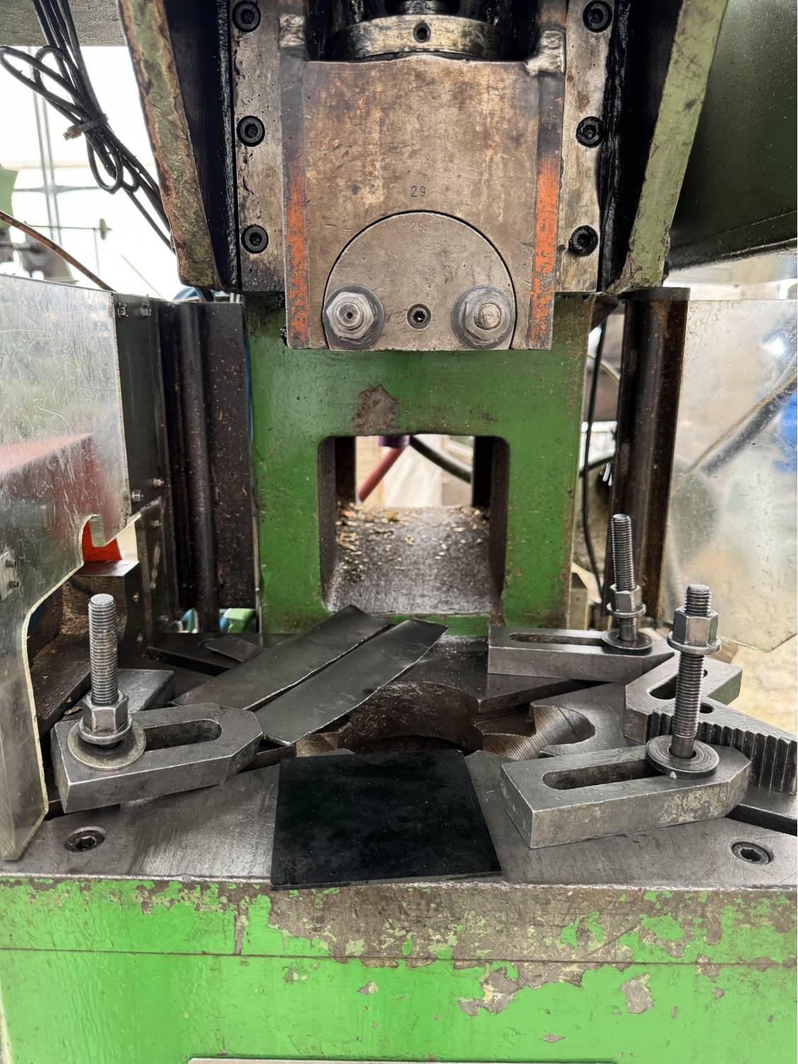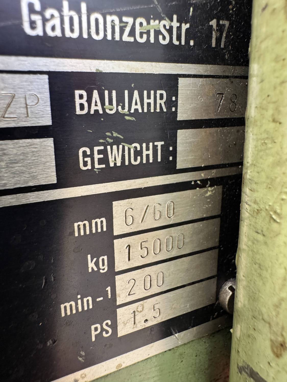 - Tlačna sila (Stößeldruck): 15 000 kg ≈ 150 kN (≈ 15 t)