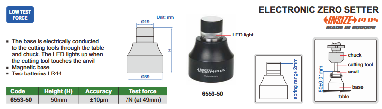 Uređaj za mjerenje visine alata s led osvjetljenjem, 50mm, Insize