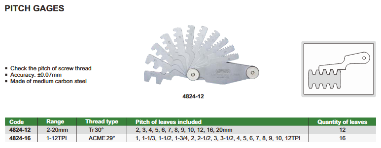 Etalon za provjeru trapeznog navoja 2-20 mm, Insize