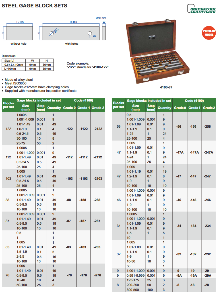 Etaloni - čelični, Grade 0, 34 kom, Insize