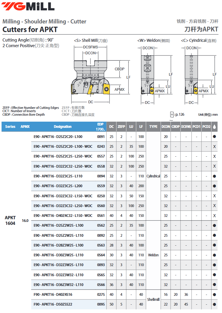 Glodaća glava E90-APKT16-D25Z2W25-L110, YG-1