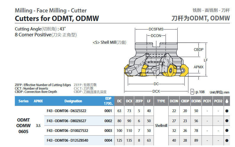 Glodaća glava F43-ODMT06-D63Z5S22, YG-1