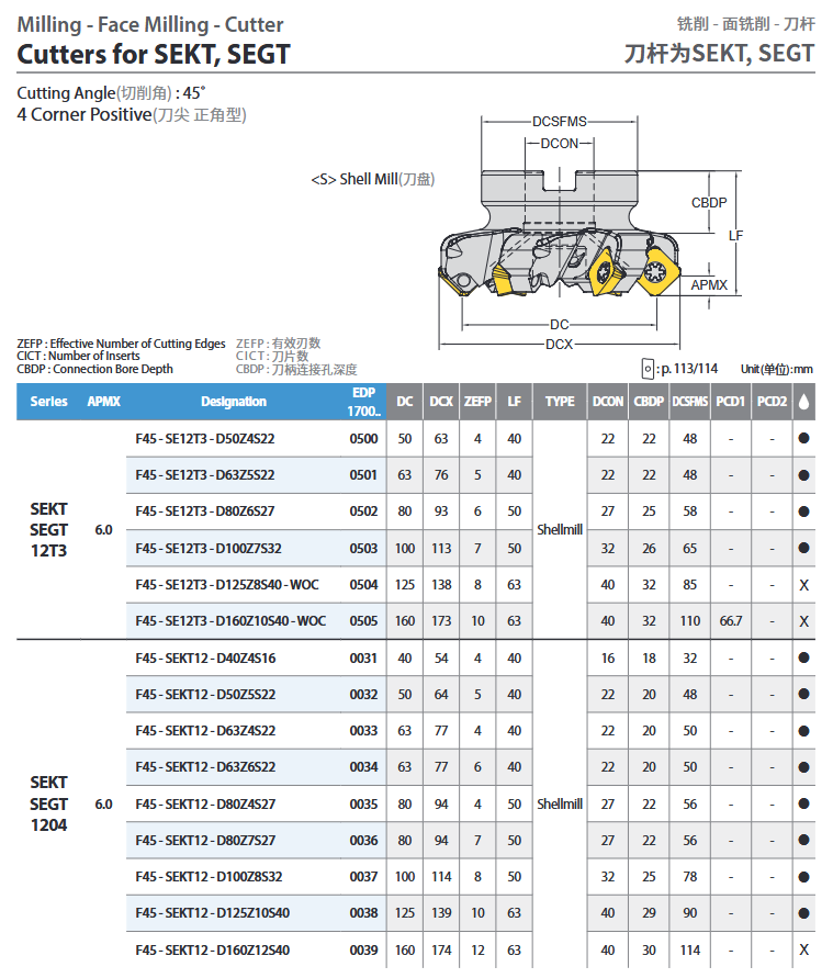 Glodaća glava F45-SEKT12-D80Z7S27, YG-1