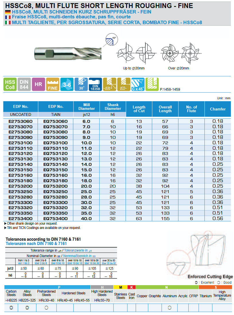 Glodalo Ø11 mm, grubo, 4P, HSS-Co8 TiAlN, DIN844, YG-1