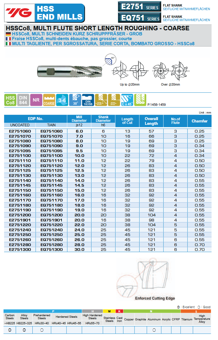 Glodalo Ø18 mm, grubo, 4P, HSS-Co8 TiAlN, DIN844, YG-1