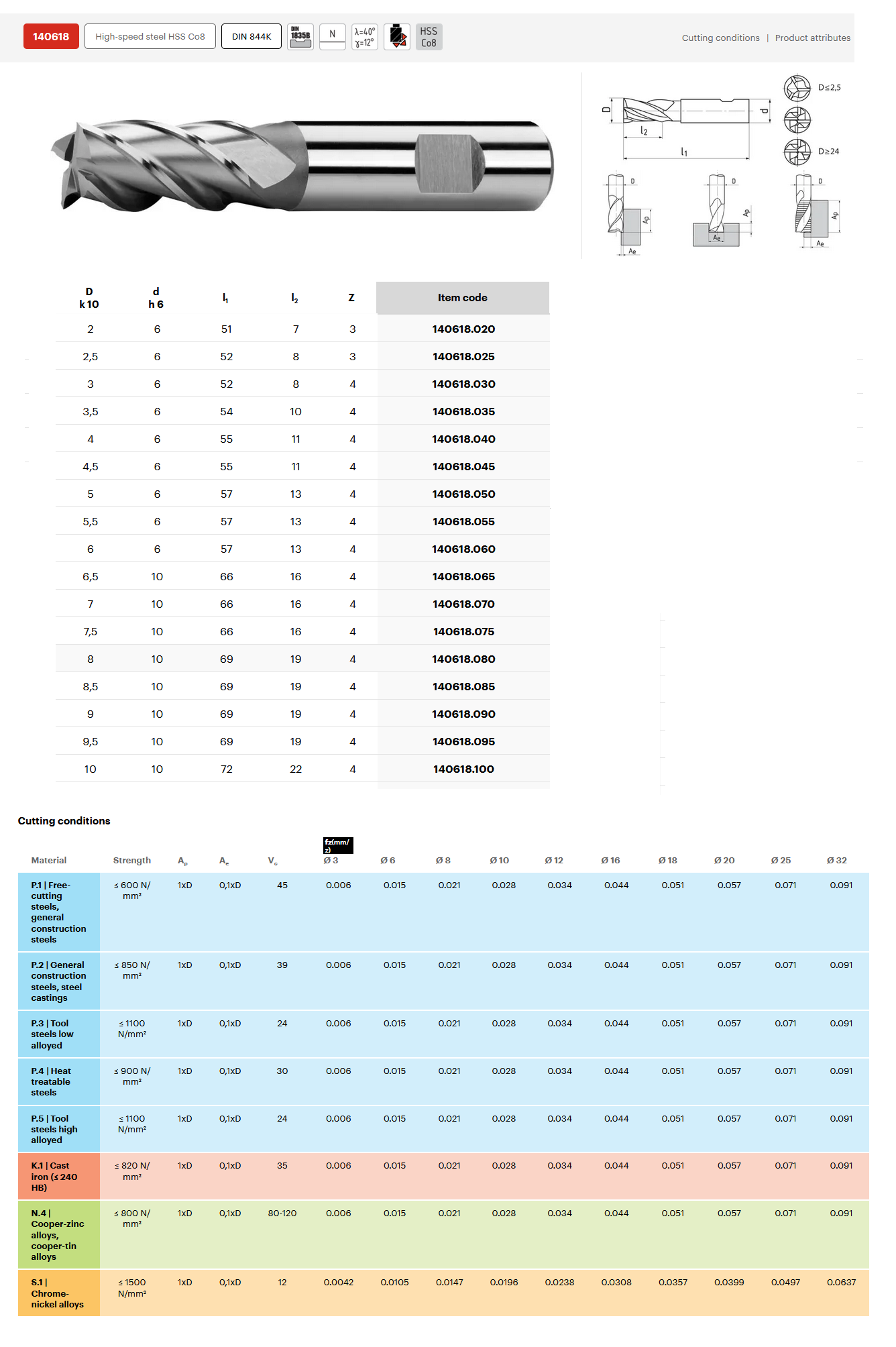 Glodalo Ø10 mm 4P, DIN 844K, HSSCo8, N, ZPS