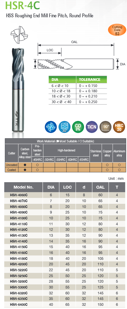 Glodalo Ø30 HSS Co, 5 pera, grubo, TTK HSR-5300C