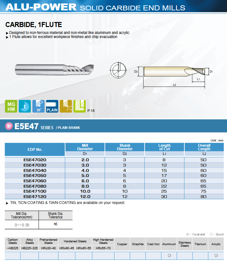- Dizajnirano za obradu obojenih metala i nemetalnih materijala poput aluminija i akrila