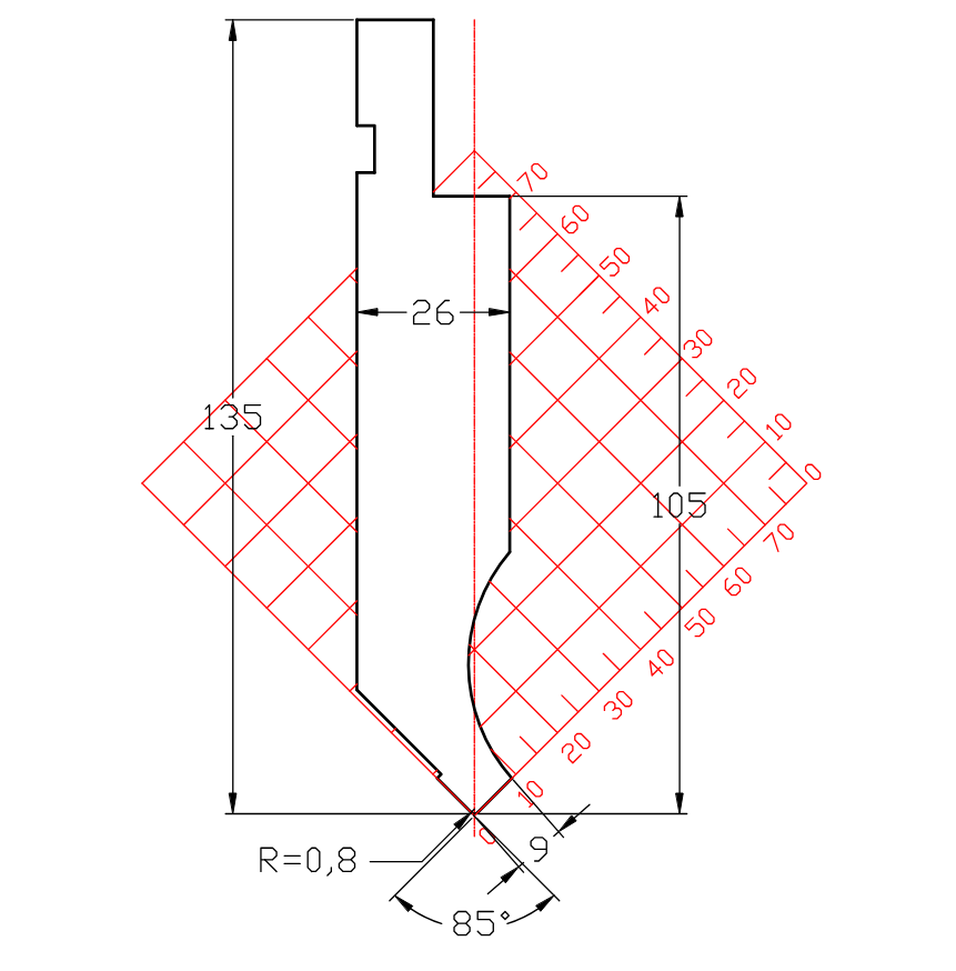 Gornji alat za savijanje 10.00/85° x 415 mm R=0.8 mm, -B