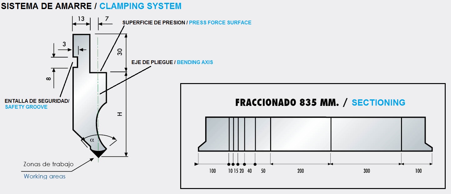 Gornji alat za savijanje 10.12/30 x 835 mm R=0.8 mm, segmentiran