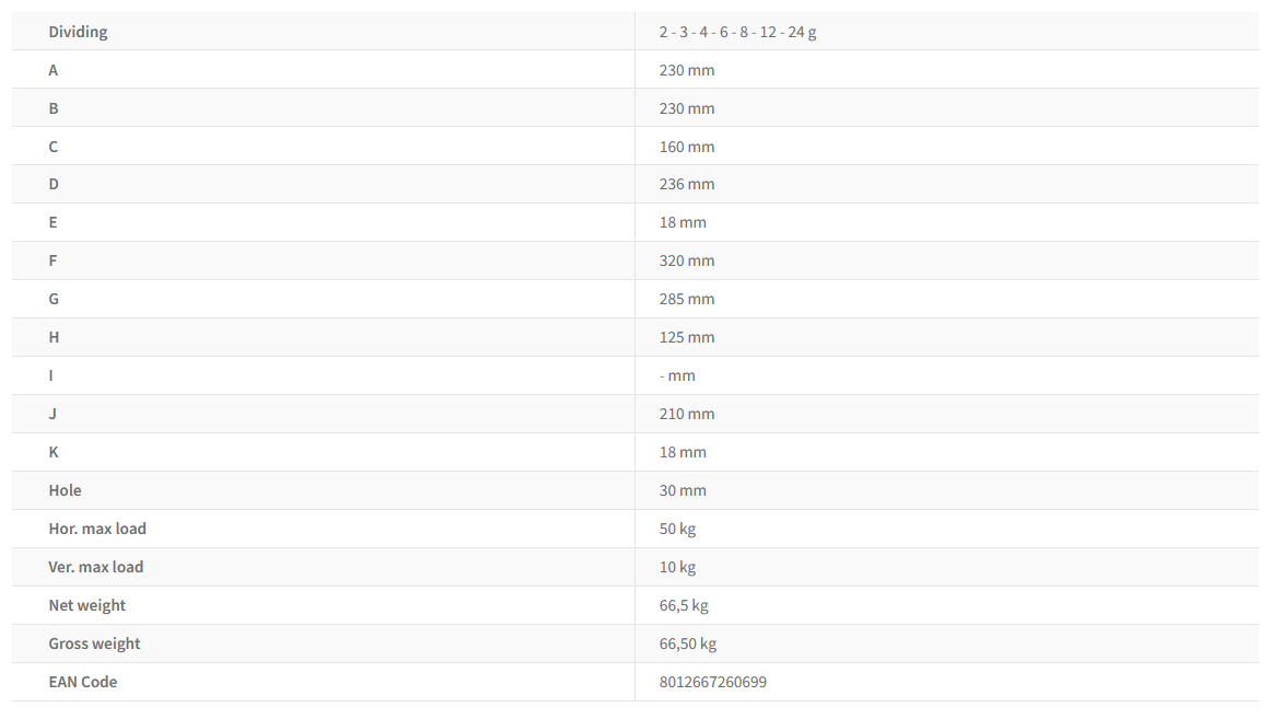 - Dividing: 2 - 3 - 4 - 6 - 8 - 12 - 24 g