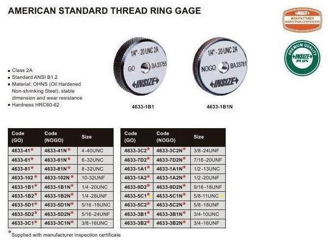 Kontrolni prsten 5/8-11 UNC, ide, Insize