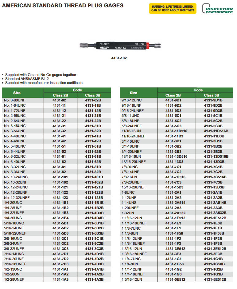 Kontrolnik 3/4” -10 UNC, IDE, NE IDE, Insize