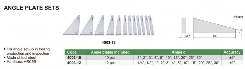 - Uključuje podloge: 1°, 2°, 3°, 4°, 5°, 10°, 15°, 20°, 25°, 30°, Točnost: ±9"