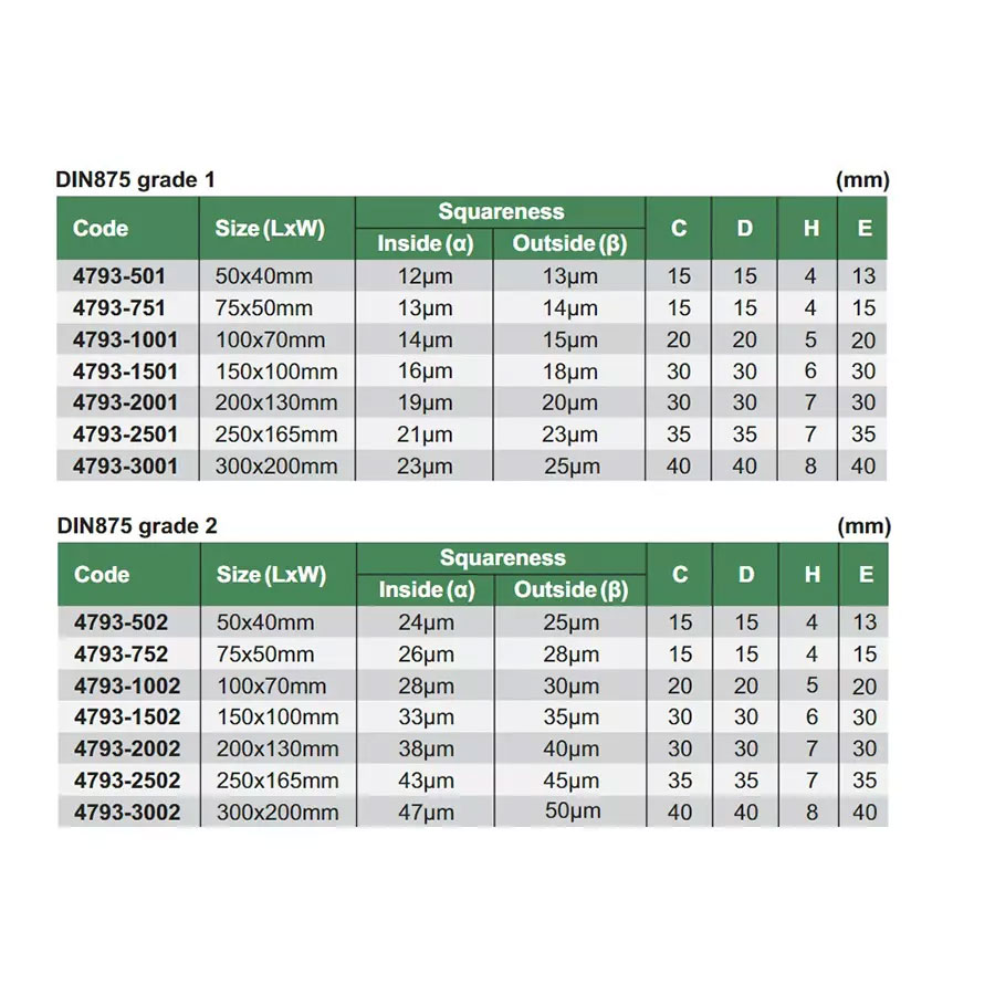 Kutnik s naslonom 90°, 50x40 mm, DIN 875, Grade 2, Insize