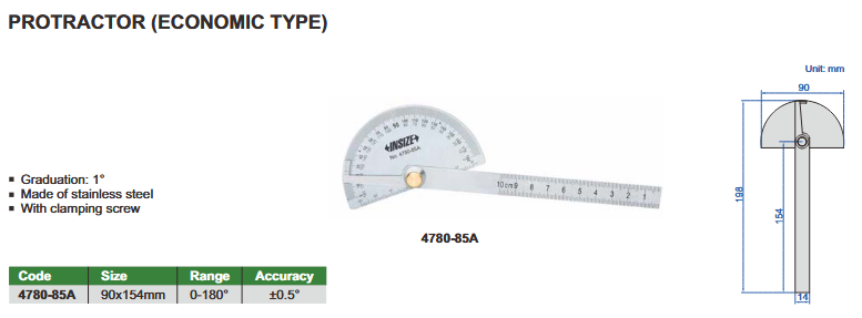 Kutomjer 0-180°, Insize
