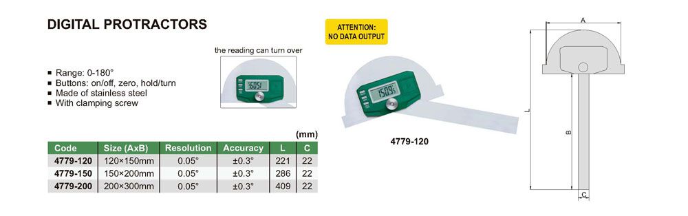 Kutomjer digitalni 150x200 mm 0-180 0.05, Insize