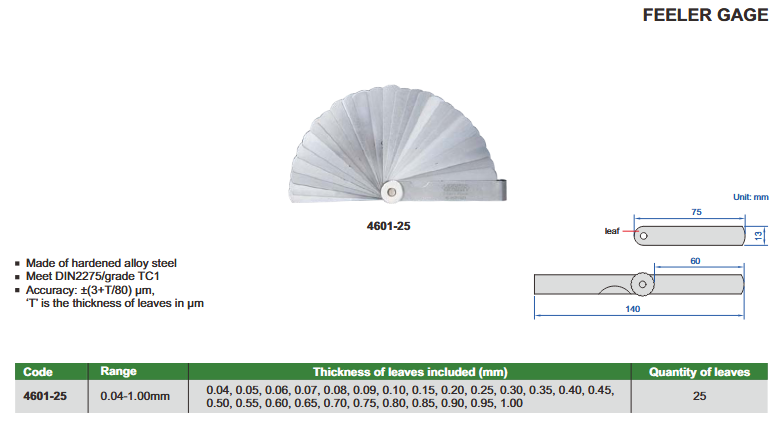 Listići za provjeru zračnosti 0,04 - 1,00 mm, Insize