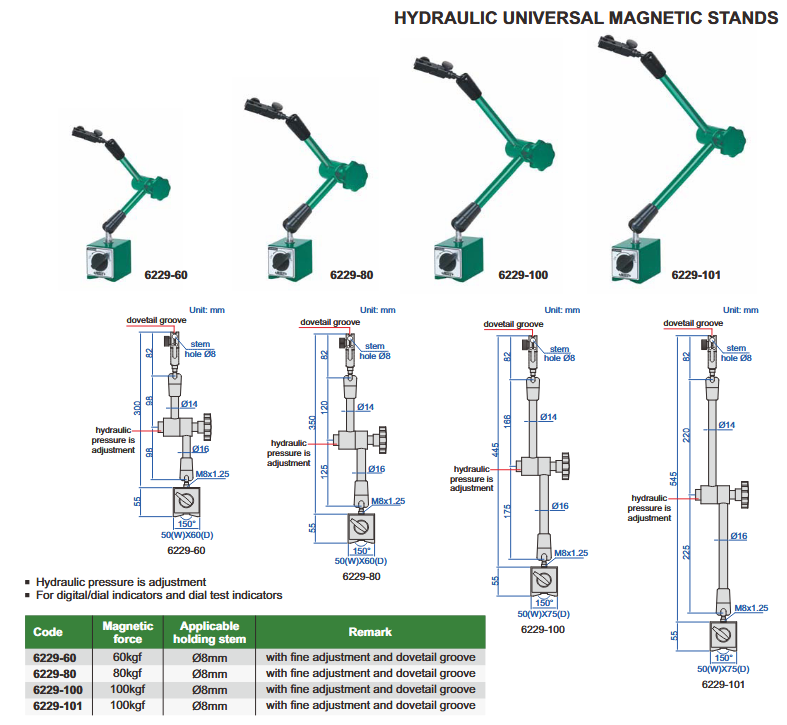 Magnetni stalak (6229-60) - hidraulični, 60 kgf, Insize