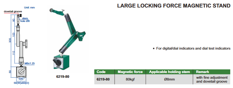 Magnetni stalak (6219-80), 80 kgf, Insize