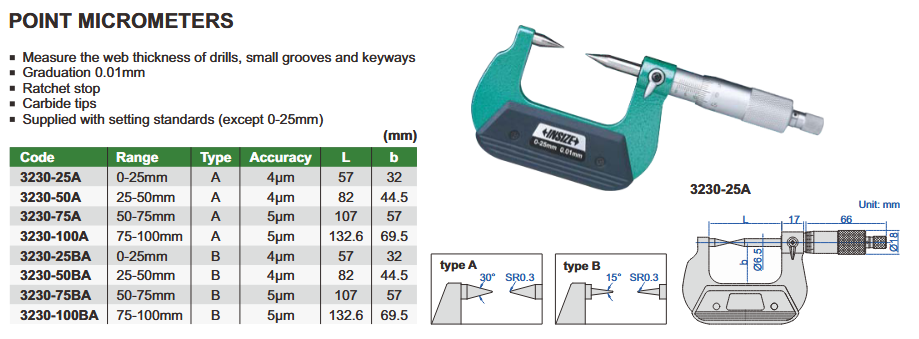 Mikrometar Point-točka, 75-100 mm 0.01mm 15°, Insize