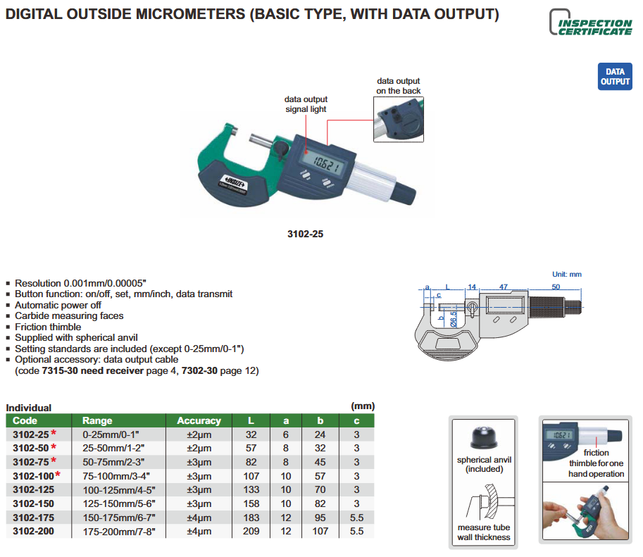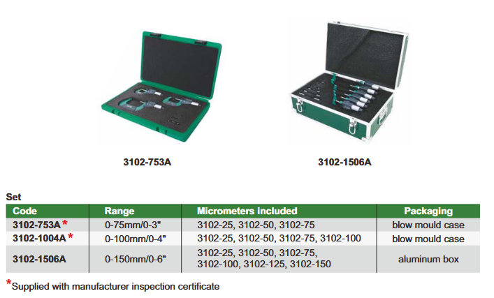 - sastoji se od mikrometara: 3102-25, 3102-50, 3102-75, 3102-100