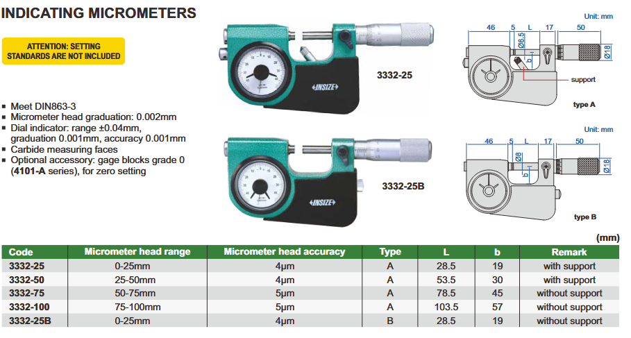 - sat: raspon ±0.04mm, podjela 0.001mm, točnost 0.001mm