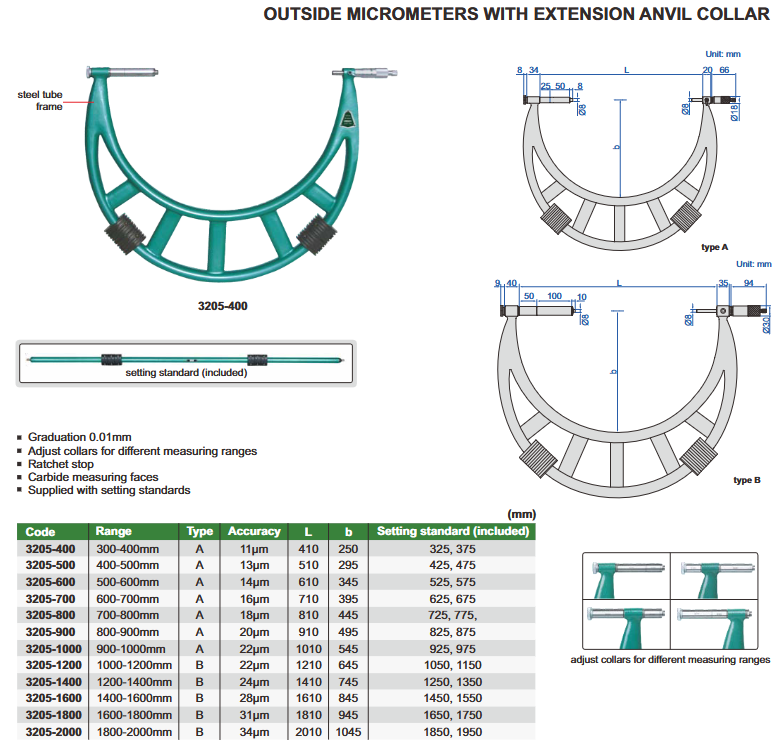- Carbide messuring faces