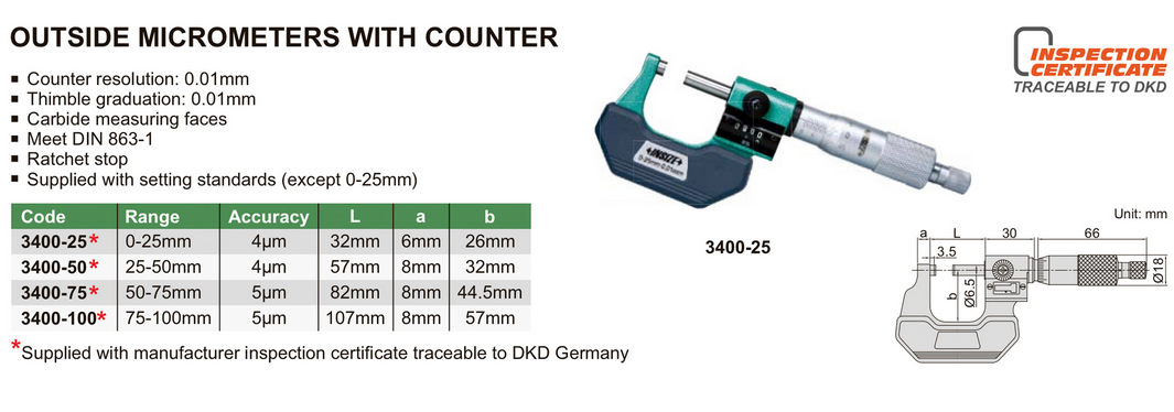 - Rezolucija brojčanika: 0,01 mm