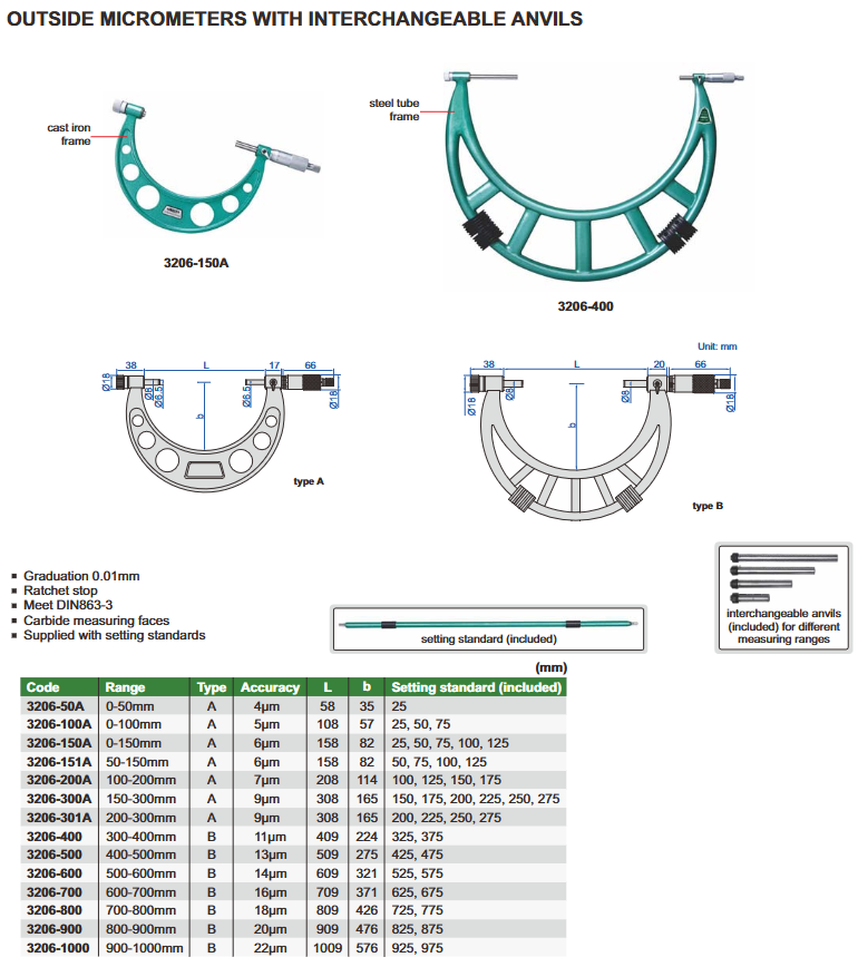 Mikrometar vanjski s izmjenjivim ticalom 500-600 mm, Insize