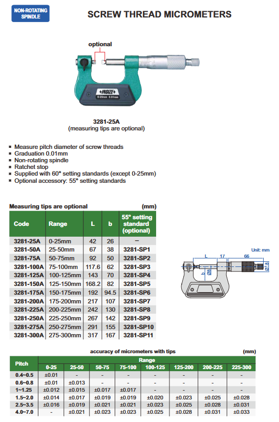 Mikrometar vanjski za mjerenje navoja 150-175 mm, Insize