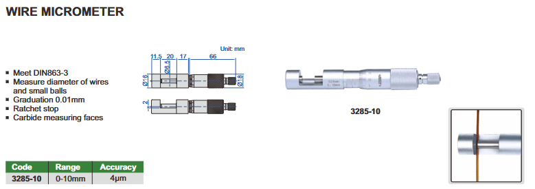 Mikrometar za mjerenje debljine žica, 0-10 mm