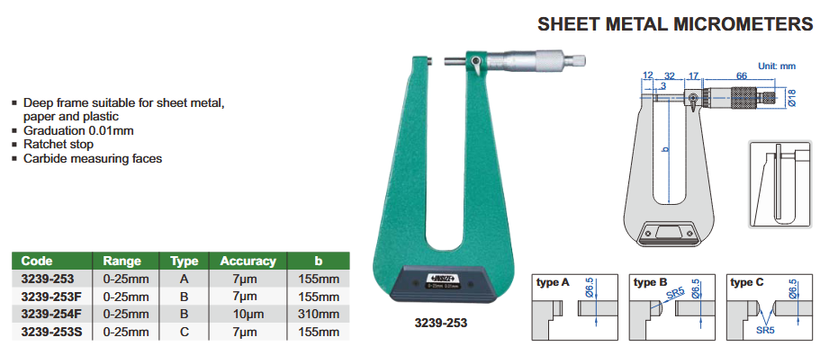 Mikrometar za mjerenje pločevina 0-25mm 0.01mm d=310 mm, Insize